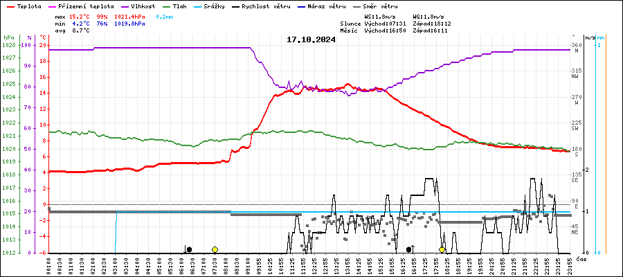 | Maximální teplota: | 15.2°C | v 13:55 |