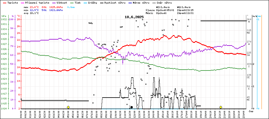 | Maximální teplota: | 23.4°C | v 15:15 |