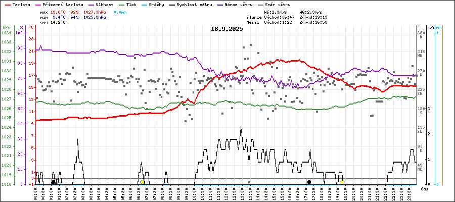 | Maximální teplota: | 19.6°C | v 15:10 |