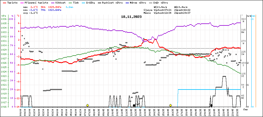 | Minimální teplota: | -3.6°C | v 05:15 |