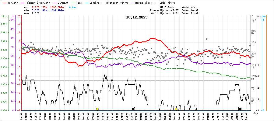 | Minimální teplota: | 3.3°C | v 06:00 |