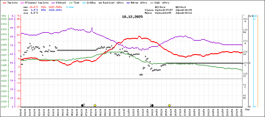 | Maximální teplota: | 10.8°C | v 12:55 |