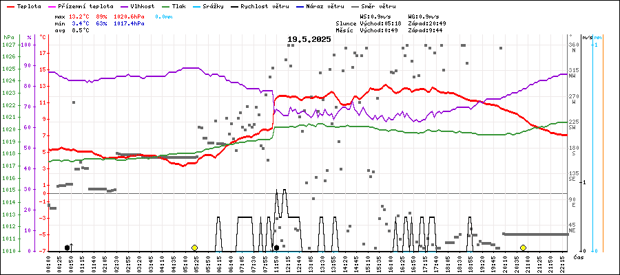 | Maximální teplota: | 13.2°C | v 15:50 |