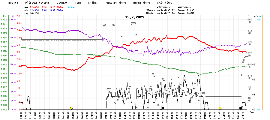 | Maximální teplota: | 22.6°C | v 15:25 |