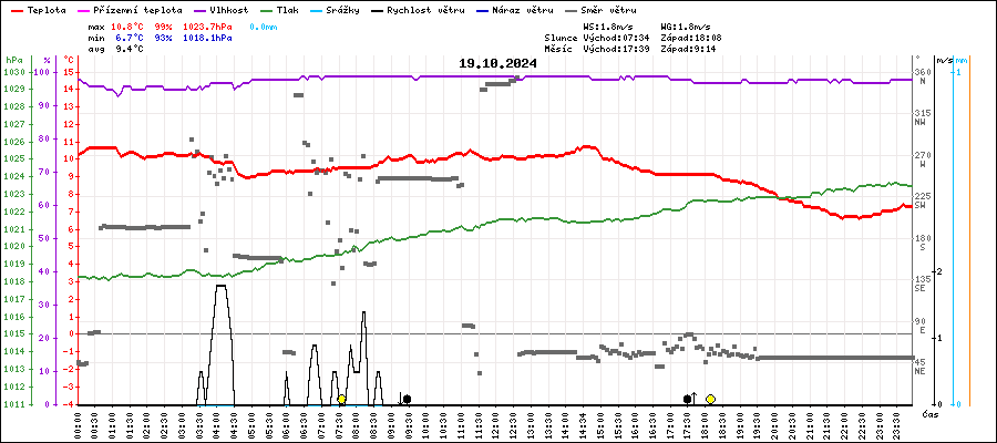 | Maximální teplota: | 10.8°C | v 14:34 |