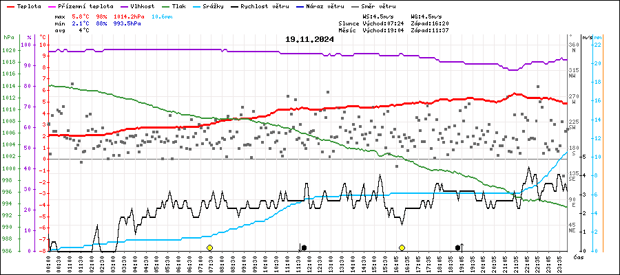 | Maximální teplota: | 5.8°C | v 21:30 |