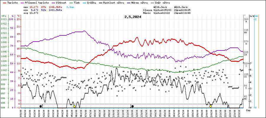 | Maximální teplota: | 18.2°C | v 12:30 |