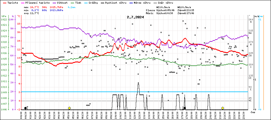 | Maximální teplota: | 14.7°C | v 17:20 |
