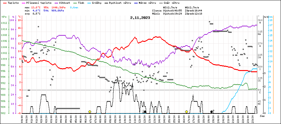 | Maximální teplota: | 13.8°C | v 13:35 |