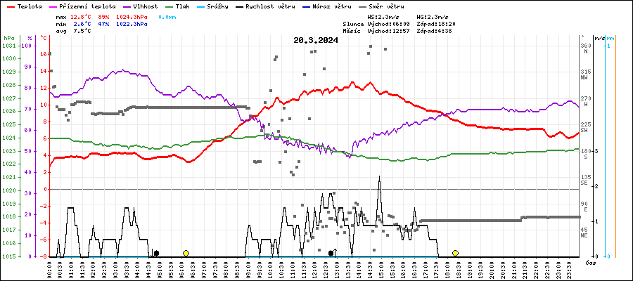 | Maximální teplota: | 12.8°C | v 13:40 |