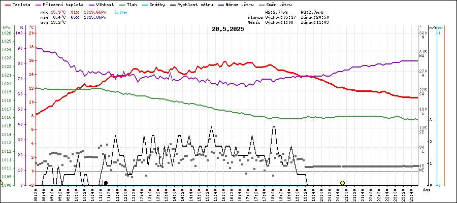 | Maximální teplota: | 15.9°C | v 16:00 |