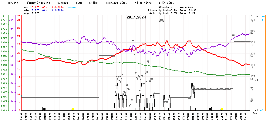 | Minimální teplota: | 16.9°C | v 23:10 |