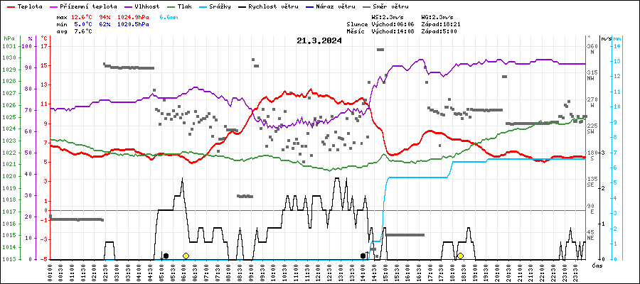 | Maximální teplota: | 12.6°C | v 11:40 |