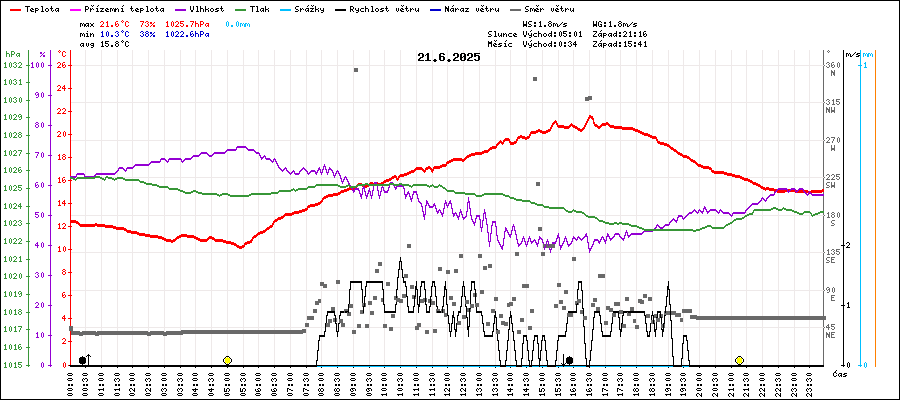 | Maximální teplota: | 21.6°C | v 16:30 |