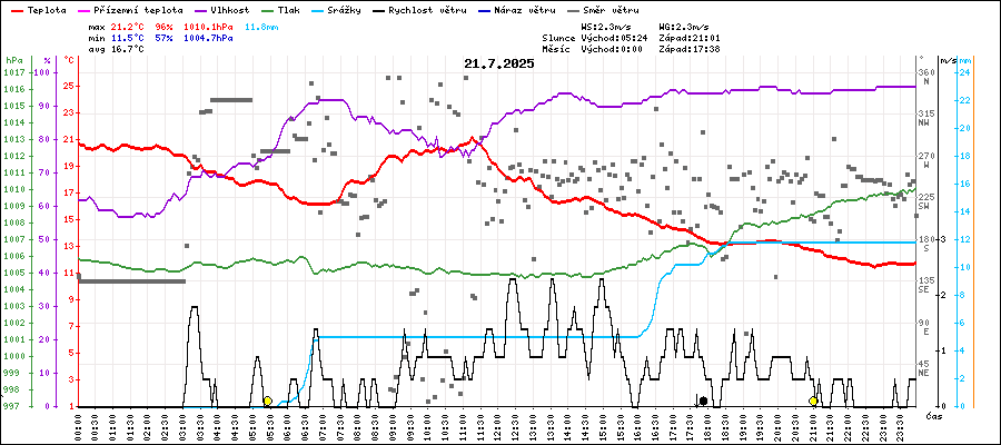 | Maximální teplota: | 21.2°C | v 11:15 |