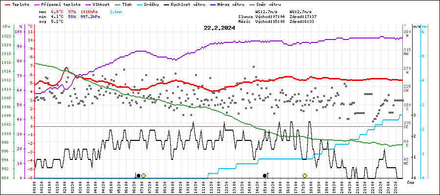 | Maximální teplota: | 6.9°C | v 02:05 |
