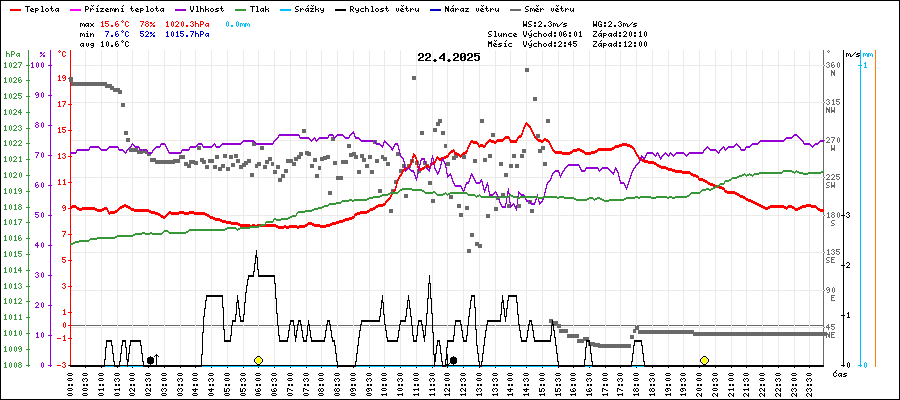 | Průměrná teplota: | 10.1°C | (tepl. v 8 + 15 + 2 x 22 h) |