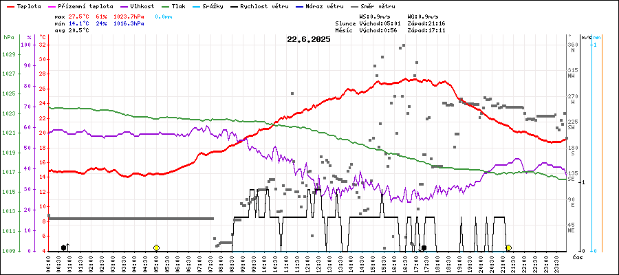 | Maximální teplota: | 27.5°C | v 16:30 |