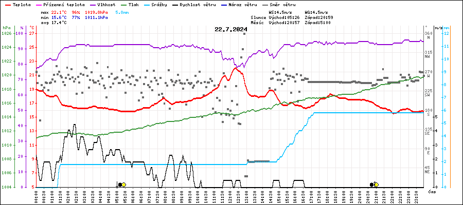 | Maximální teplota: | 22.1°C | v 12:20 |