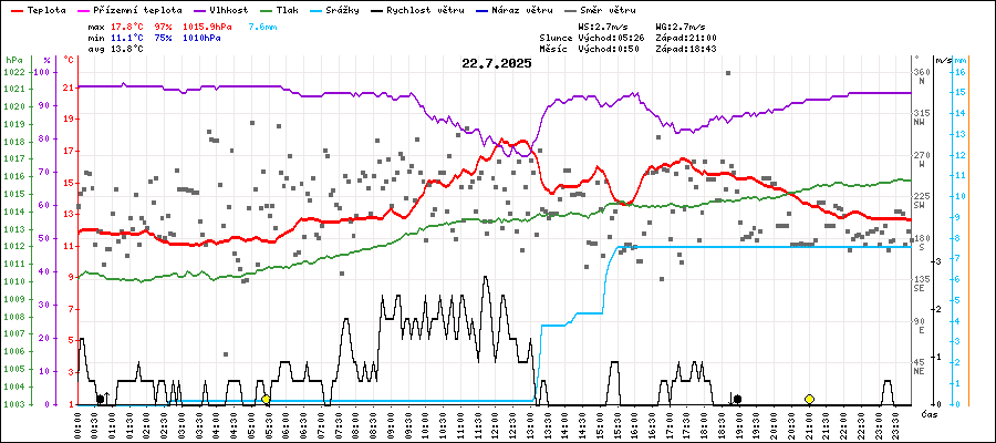 | Maximální teplota: | 17.8°C | v 12:10 |