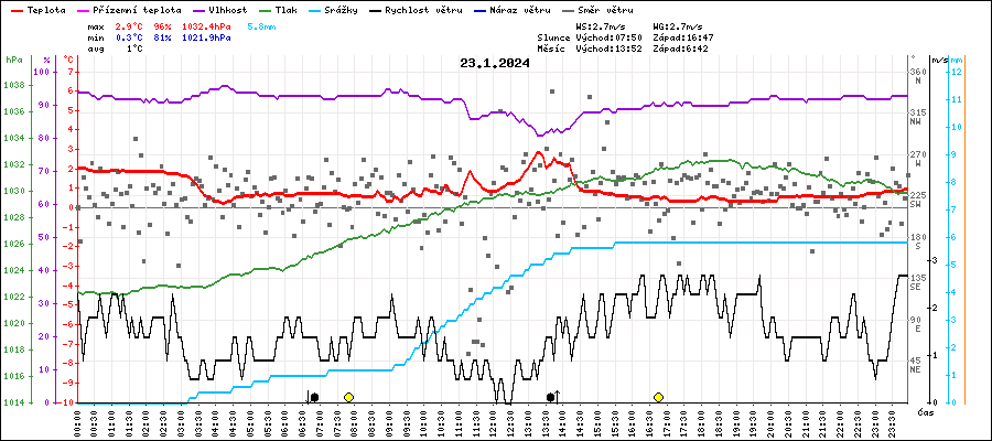 | Maximální teplota: | 2.9°C | v 13:15 |
