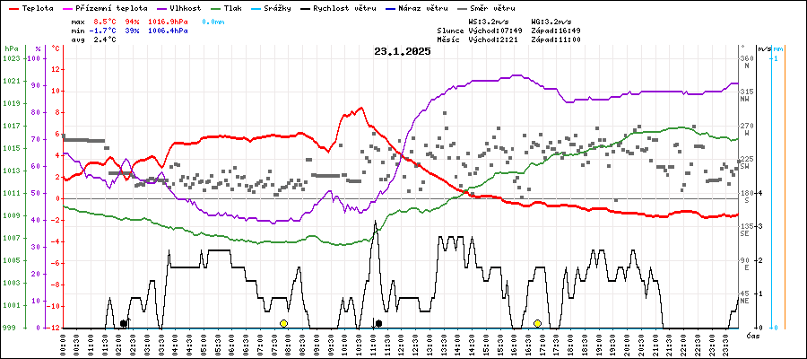 | Minimální teplota: | -1.7°C | v 22:45 |