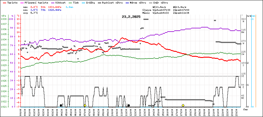 | Minimální teplota: | 3.5°C | v 22:25 |