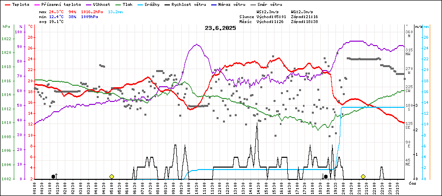 | Minimální teplota: | 12.4°C | v 23:50 |