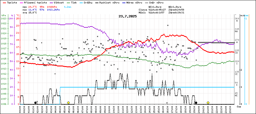 | Maximální teplota: | 20.7°C | v 16:05 |