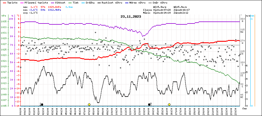 | Maximální teplota: | 1.1°C | v 22:40 |