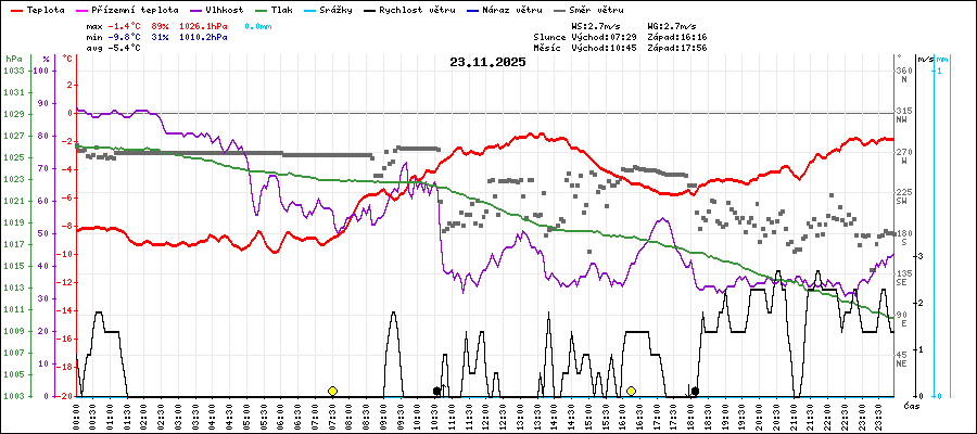 | Minimální teplota: | -9.8°C | v 05:45 |