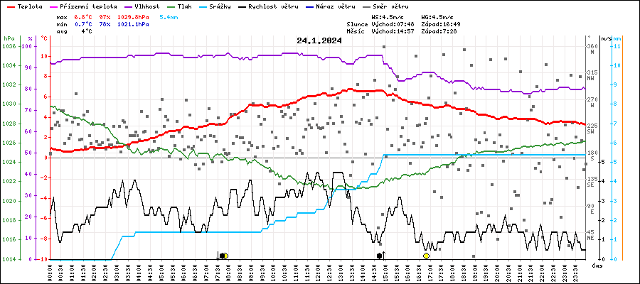 | Maximální teplota: | 6.8°C | v 13:20 |