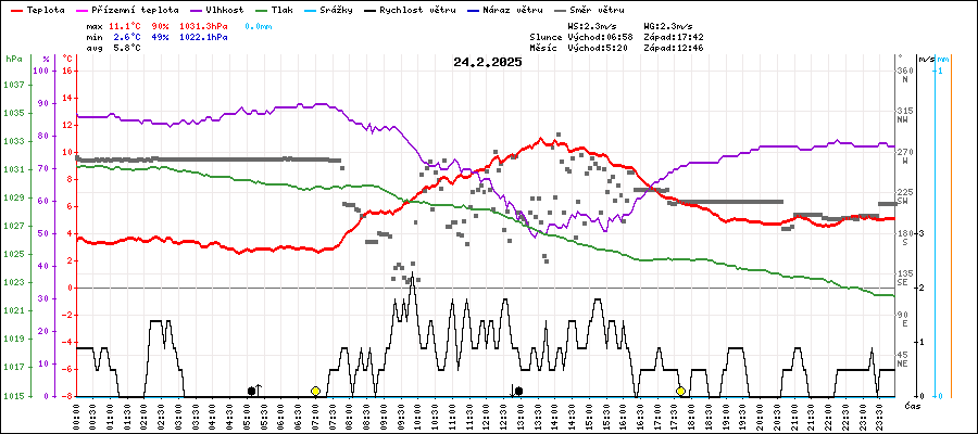 | Minimální teplota: | 2.6°C | v 04:45 |