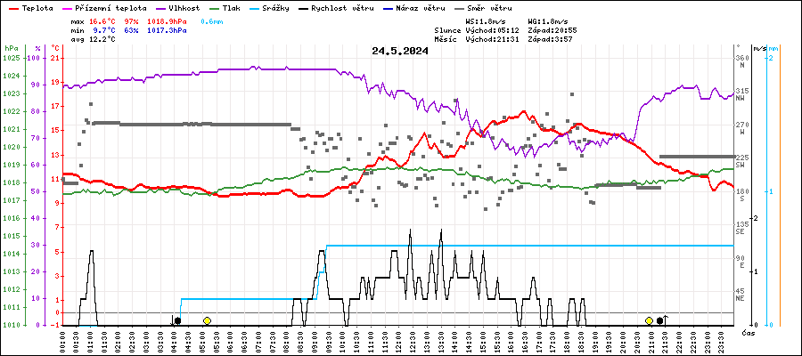 | Maximální teplota: | 16.6°C | v 16:25 |