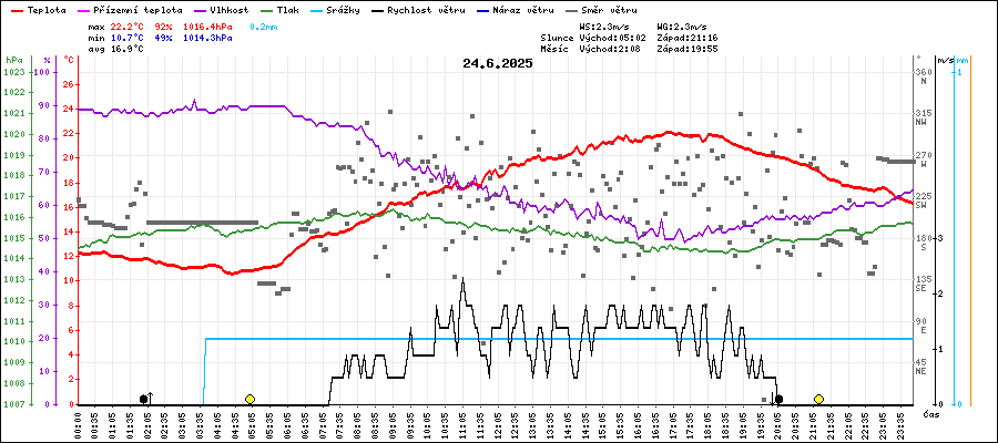 | Maximální teplota: | 22.2°C | v 16:55 |