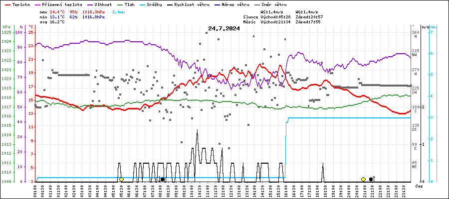 | Minimální teplota: | 13.1°C | v 23:10 |