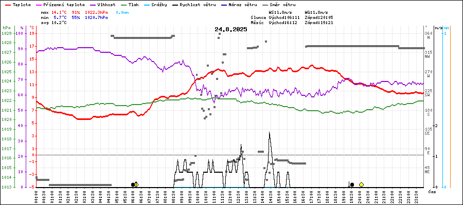| Maximální teplota: | 14.1°C | v 17:00 |