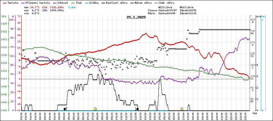 | Maximální teplota: | 14.7°C | v 13:05 |
