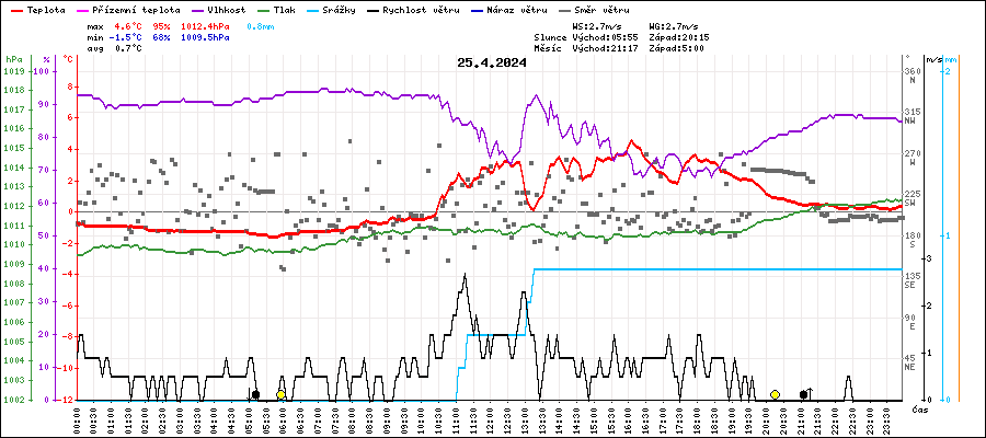 | Minimální teplota: | -1.5°C | v 05:35 |