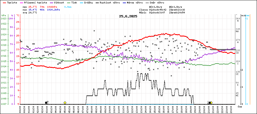 | Maximální teplota: | 25.7°C | v 15:55 |