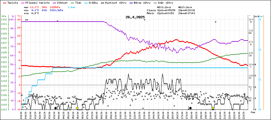 | Maximální teplota: | 11.1°C | v 16:15 |