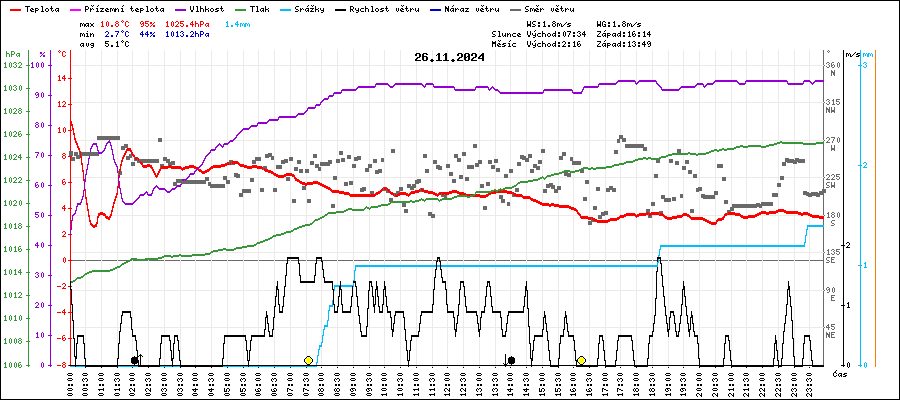 | Minimální teplota: | 2.7°C | v 00:45 |