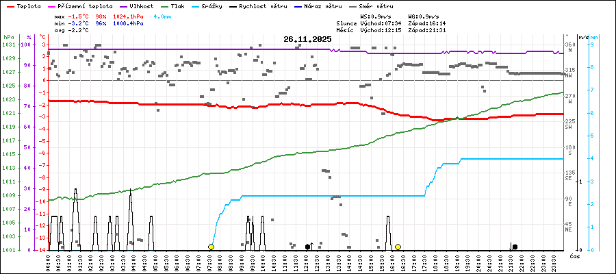 | Minimální teplota: | -3.2°C | v 17:50 |
