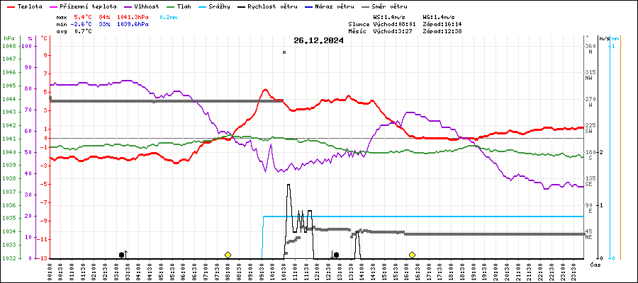 | Minimální teplota: | -2.6°C | v 05:35 |