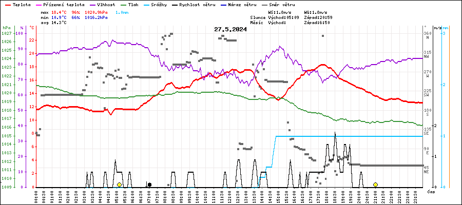 | Maximální teplota: | 18.4°C | v 17:40 |