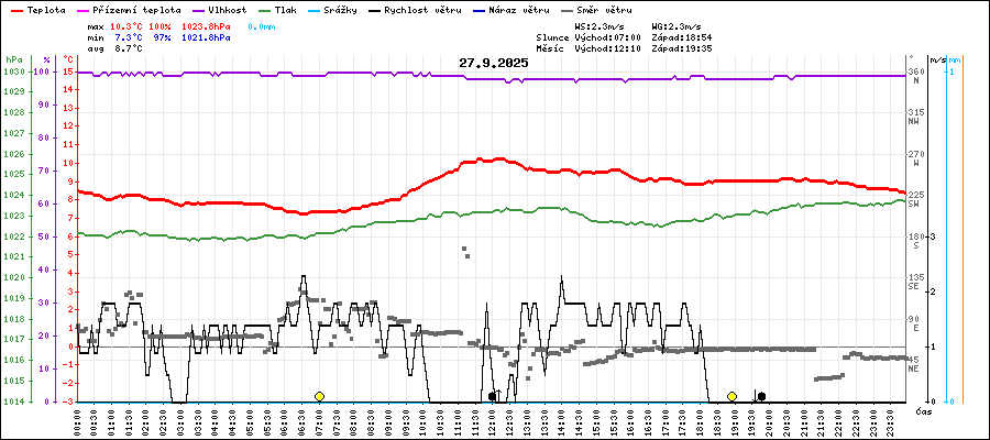 | Minimální teplota: | 7.3°C | v 06:25 |