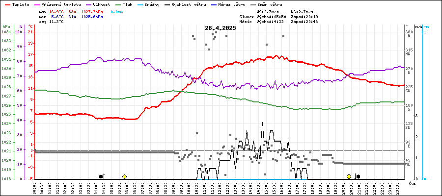| Maximální teplota: | 16.9°C | v 15:40 |