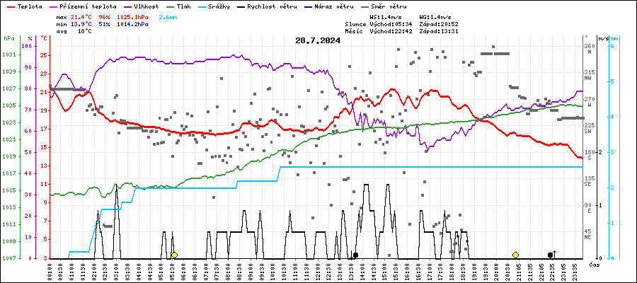 | Minimální teplota: | 13.9°C | v 23:55 |