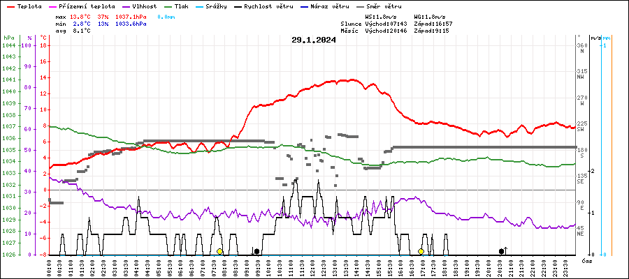| Maximální teplota: | 13.8°C | v 13:45 |