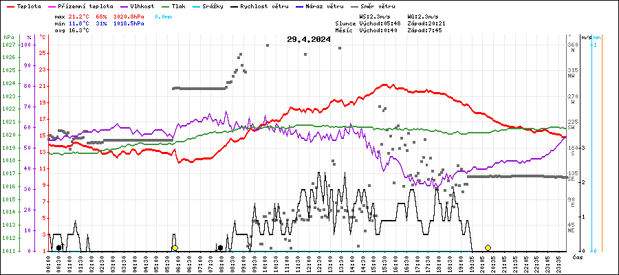 | Maximální teplota: | 21.2°C | v 15:25 |